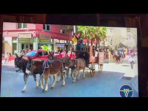 4 up Blonde mule hitch in San Antonio Parade Feb 2022